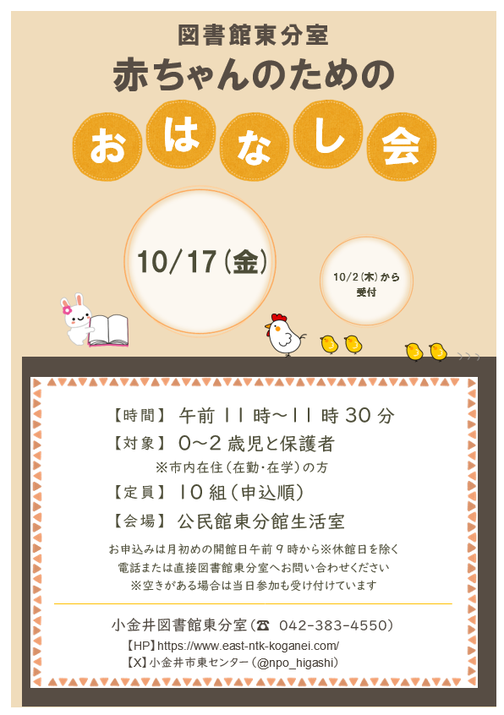 図書館の魅力をもっと感じていただくために、本と子どもをつなぐために、そして本と人との出会いのために、多くの行事を開催しています。乳幼児を対象としたおはなし会をはじめとした各種行事・イベントをお楽しみください。